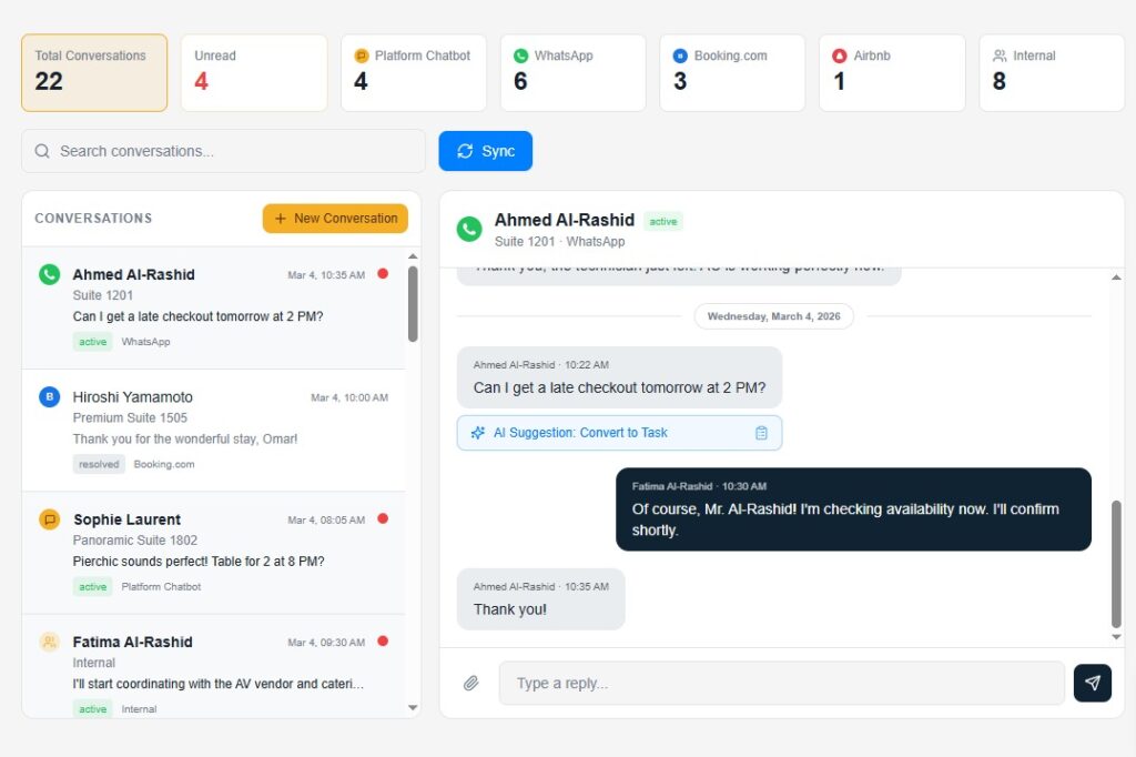 Replace fragmented tools with a unified operating system that orchestrates communication, operations and revenue in real time.