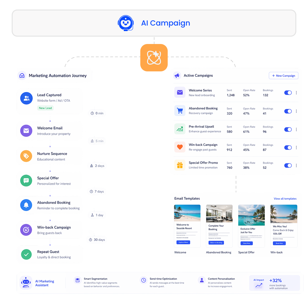 Automate your marketing from lead capture to win-back campaigns for effortless guest engagement.